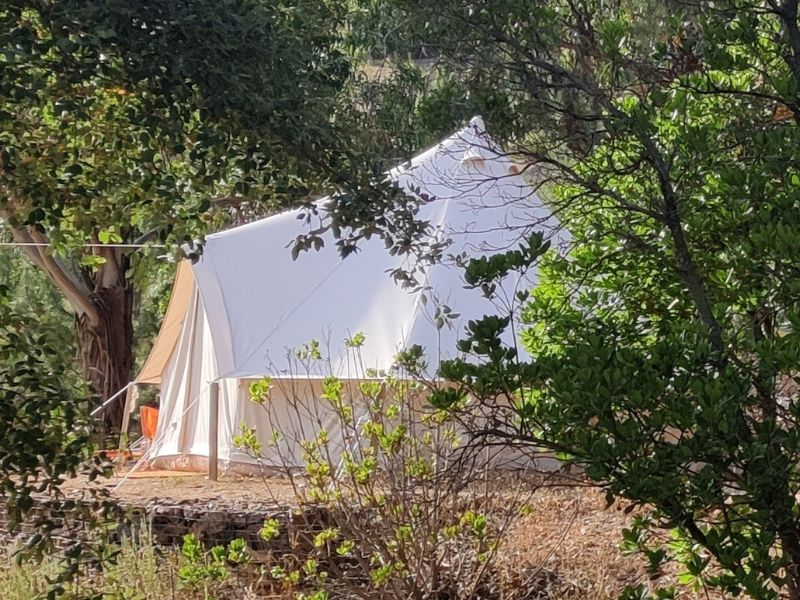 Guests stay in a mix of thoughtfully prepared spaces, including bell tents with low slatted beds and mattresses, two cabins (Om Shanti – a studio, and Sunrise Lodge with two rooms and a kitchen), and The Shepherd’s Hut. The cabins and Shepherd’s Hut each have their own showers, while the bell tents share two outdoor showers. Across the land, we use eco-friendly compost toilets.