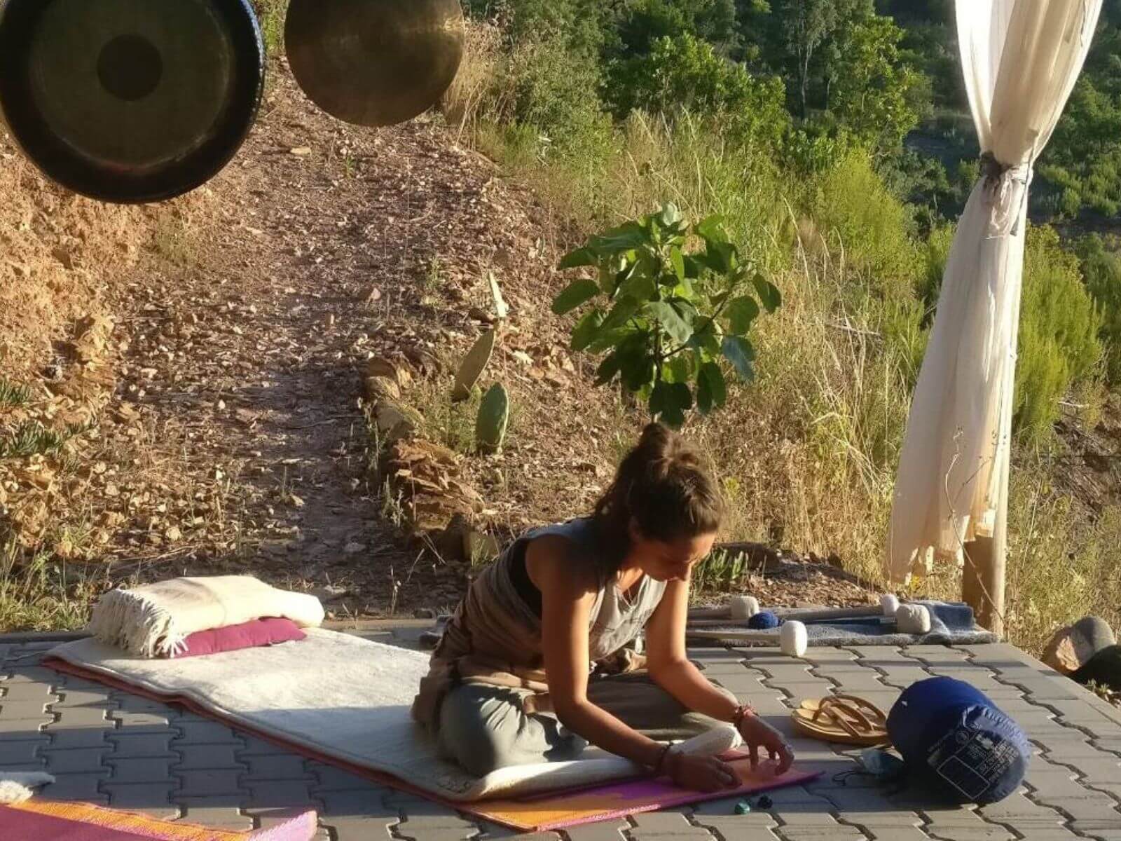 “A truly magical place. Set in beautiful wooded mountain scenery this holiday was utterly wonderful. Hosts Camilla and Ellis were warm and super helpful, the food was utterly delicious (mostly vegan and all good and varied), and our Bell tent was perfect, with comfy platform beds and all we needed. From the star filled skies at night, to the serenity of early morning strolls, to day trips to stunning beaches and a local spa, it was a perfect break. The yoga led by Camilla was a revelation too, with a platform with long views across hills and valleys. Hill hugging walks from the campsite in every direction and Monchique good for coffees and shops. Nice attention to eco concerns but with all the home comforts you need – solar hot water showers and compost loos with a view!” Kirsty, 2018
